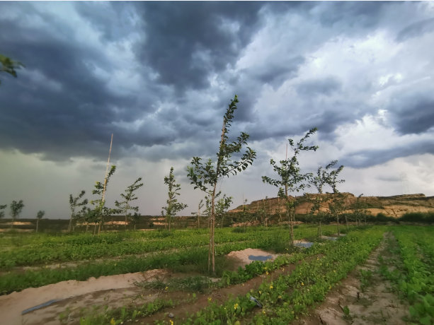 曾几何时,这里还是一片荒瘠,裸露出来的地表尘土飞扬,像是在诉说着它沧桑的经历,严肃、冷峻。许是因为多数人都外出务工,退出了与自然的争夺,许是因为黄土高原上雨季的增多,变得湿润起来,这里,崛起了一类特色产业——山地苹果。