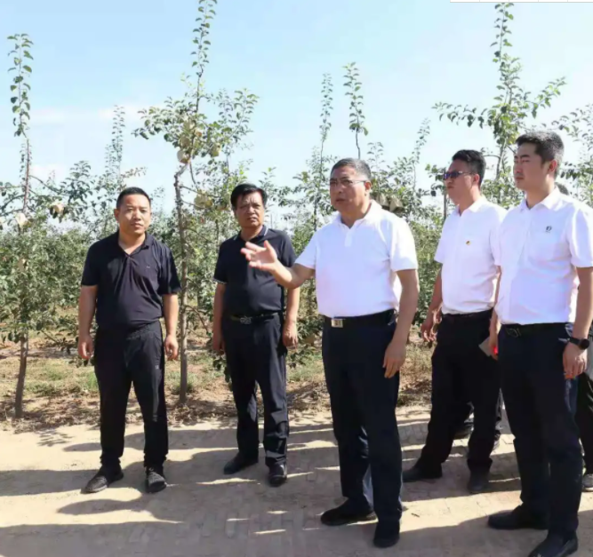 在横山下泥湾沙地苹果基地,要求探索沙地苹果基地的建设和管理经验,积极推进苹果北扩。